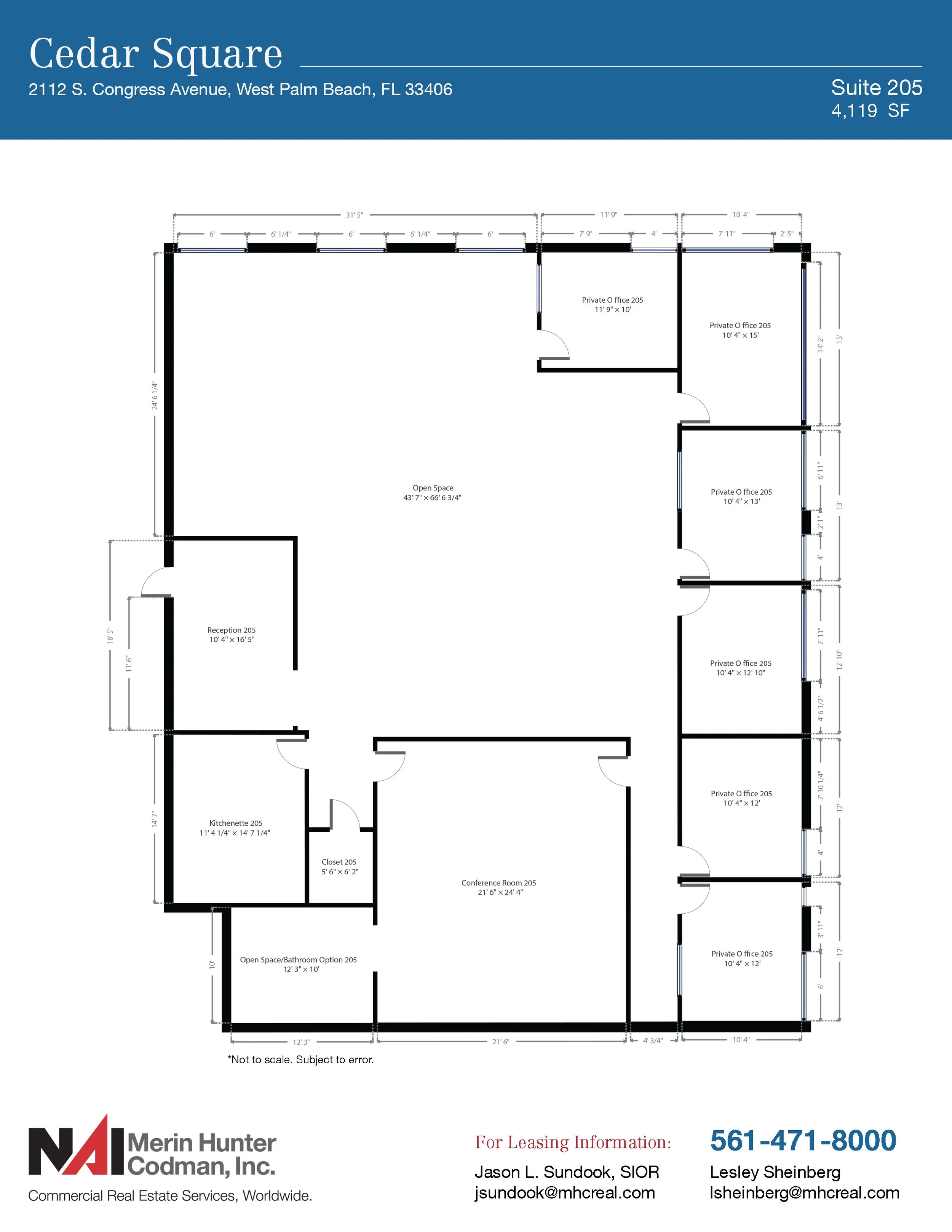 Building standard finishes. Spacious suite with reception, kitchen/breakroom, 6 offices, conference room, and large open work area.